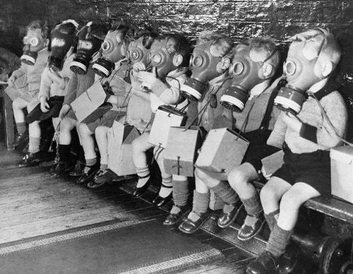 With you, I had flashes to images of young children in the wars wearing gas-masks I had seen in history class,
